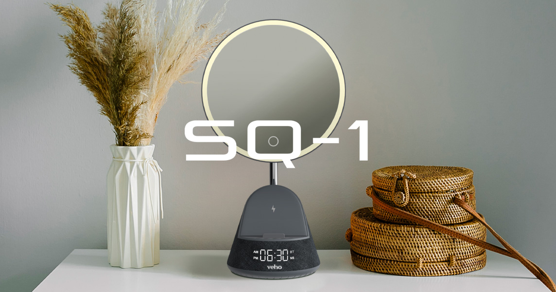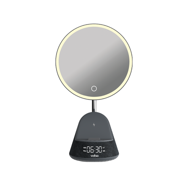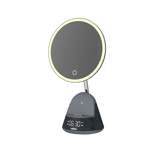 The Veho SQ-1 is an essential addition to your room, with an ultra-high definition mirror and 15W Qi wireless charging for easy fast charging. The base has a built-in Bluetooth speaker and an FM radio with automatic station search. The SQ-1 is equipped with an LED right light with 3 brightness options. A perfect bedroom accessory, the SQ-1 has a built-in alarm function with a 12hr/24hr clock and white noise function. When away from a power source, the 1200mah battery will give up to 5 hours of use.